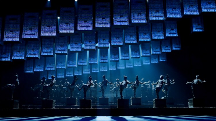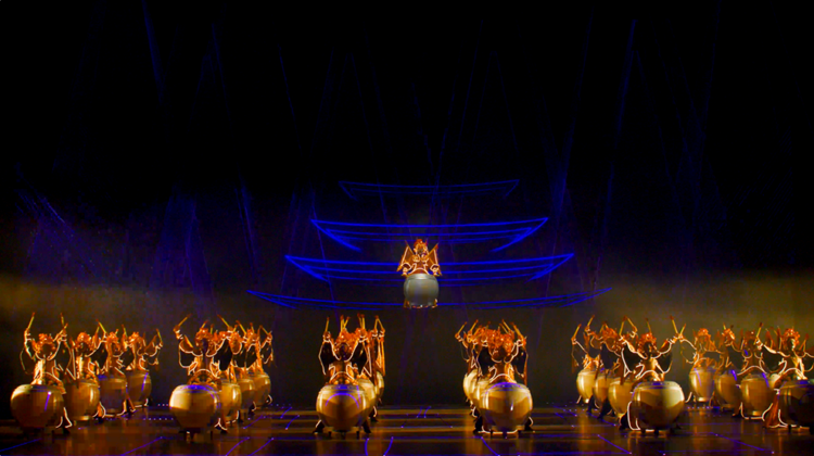 《無(wú)界·長(zhǎng)安》以具有代表性的陜西非物質(zhì)文化遺產(chǎn)為基底,由八個(gè)不同風(fēng)格和立意的創(chuàng)意段落組成。在《萬(wàn)象》篇章中,演出借助高科技手段,用“重走西游”的片段巧妙切題“重走絲綢之路”;在《共生》和《傳奇》篇章中,演出則通過(guò)非遺陶塤與機(jī)器人的共鳴,以及兵馬俑陣列在數(shù)字時(shí)代的全面蘇醒,向人們展示在數(shù)字化浪潮下,陜西文化遺產(chǎn)如何走向新的輝煌。