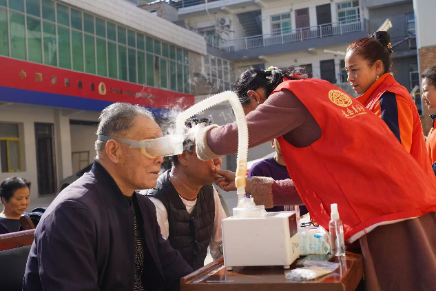 老人在驛站做眼部熏蒸 中國經(jīng)濟網(wǎng)記者鞠然/攝
