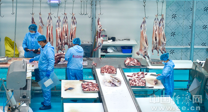橫山香草羊肉正在進(jìn)行羊肉加工 徐均坪 攝